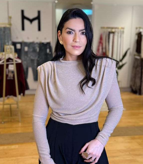 Elegant, modern, and subtly luminous. This long-sleeve blouse features a soft draped front and a delicate shimmering finish for a refined, feminine touch.Perfect to pair with jeans, dress pants, or skirts —ideal for evening events or effortlessly chic looks.
