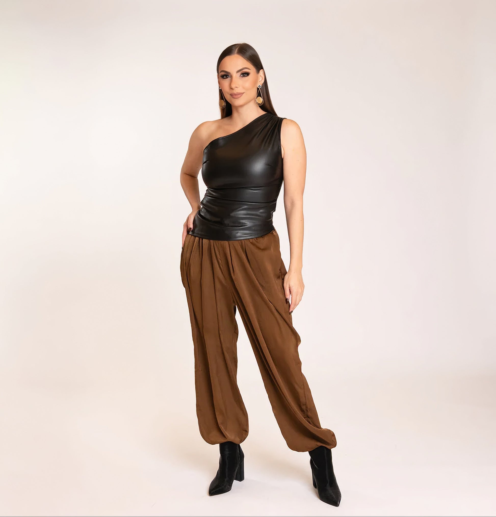 Nuestros Satin Aladdin Pants combinan lujo y comodidad en una sola prenda espectacular. Confeccionados en una tela satinada que cae con elegancia, tienen cintura ajustable con cordón y ruedo elástico que crea la silueta tipo Aladdín, moderna y femenina. Son perfectos para looks de día o de noche — combínalos con tacones para un outfit sofisticado o con sandalias para un estilo relajado y chic.