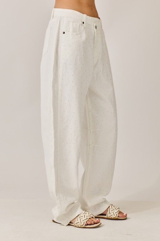 this Jeans bring a fresh twist to your everyday denim. With a relaxed, straight-leg fit and subtle sparkly details, these jeans are designed to make casual looks shine. Available in white, black, and classic denim blue, they’re perfect for pairing with bodysuits, crop tops, or oversized shirts for a chic yet effortless vibe.